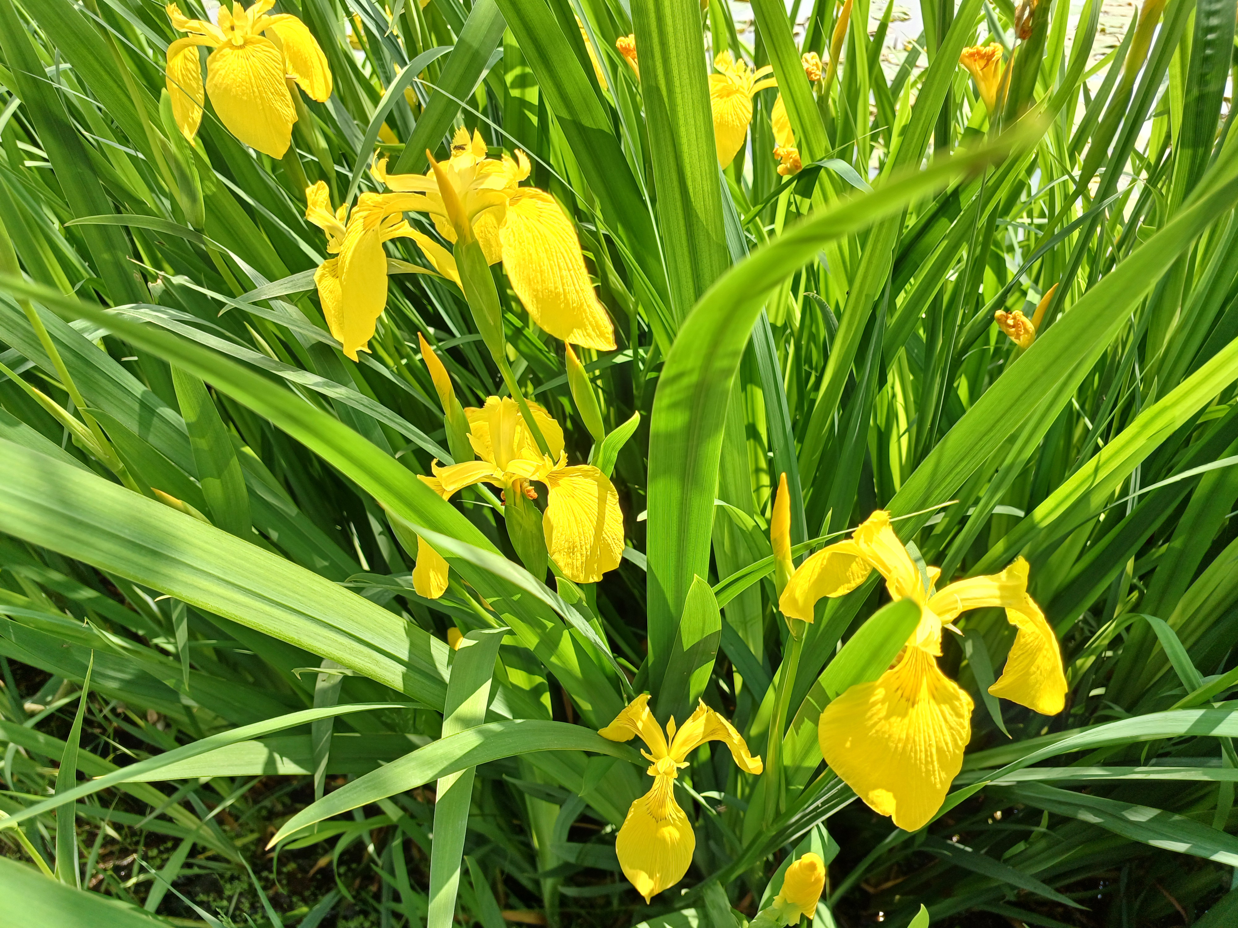 창포원 연못 가장자리에 노랑 꽃창포가 무수히 피어있다