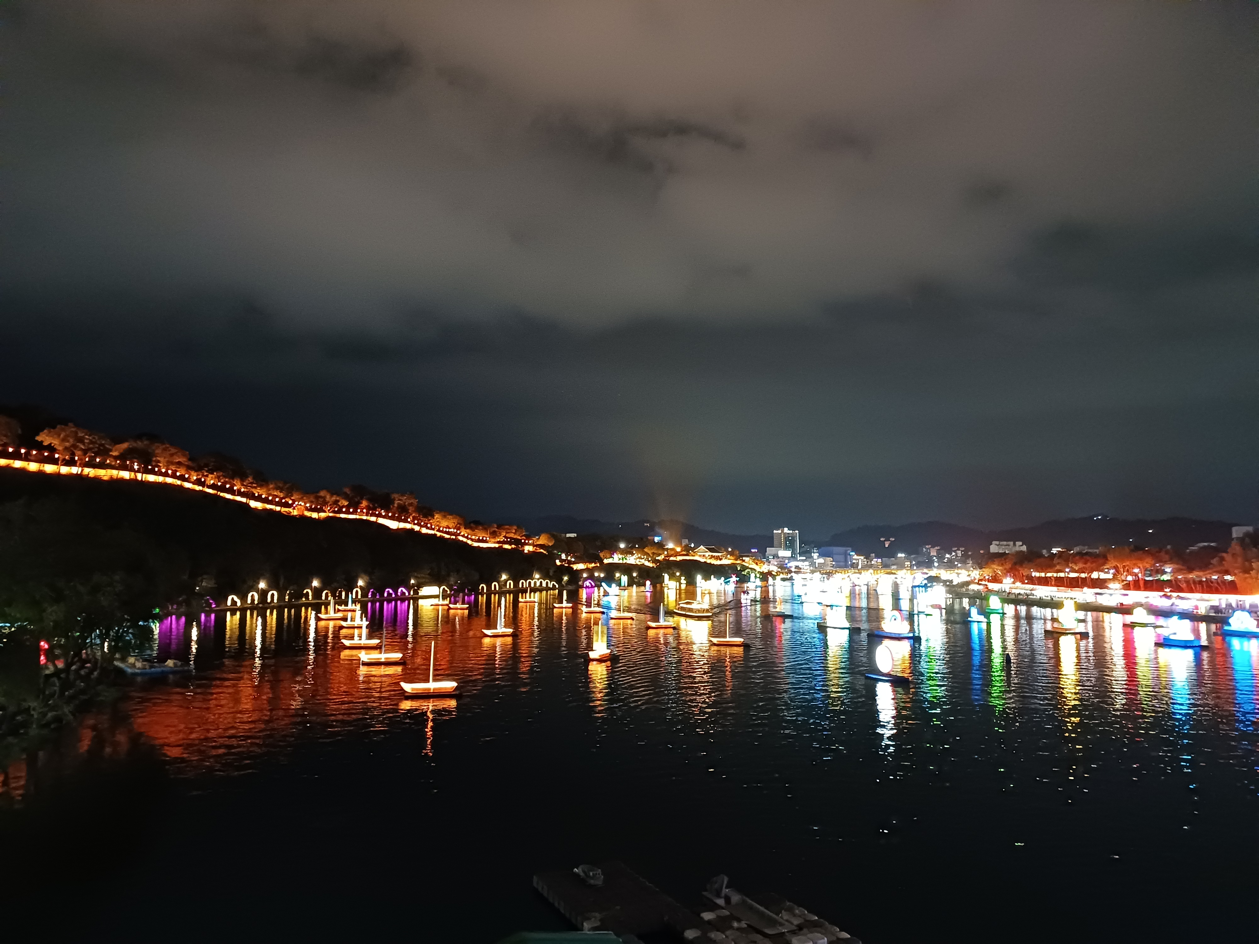 눈이 호사를 누리는구나 눈을 아래로 두니 고른 수면 위에 수많은 형상의 등이 사람들의 소망을 빌고 기쁨과 행복에 취하게 하는구나