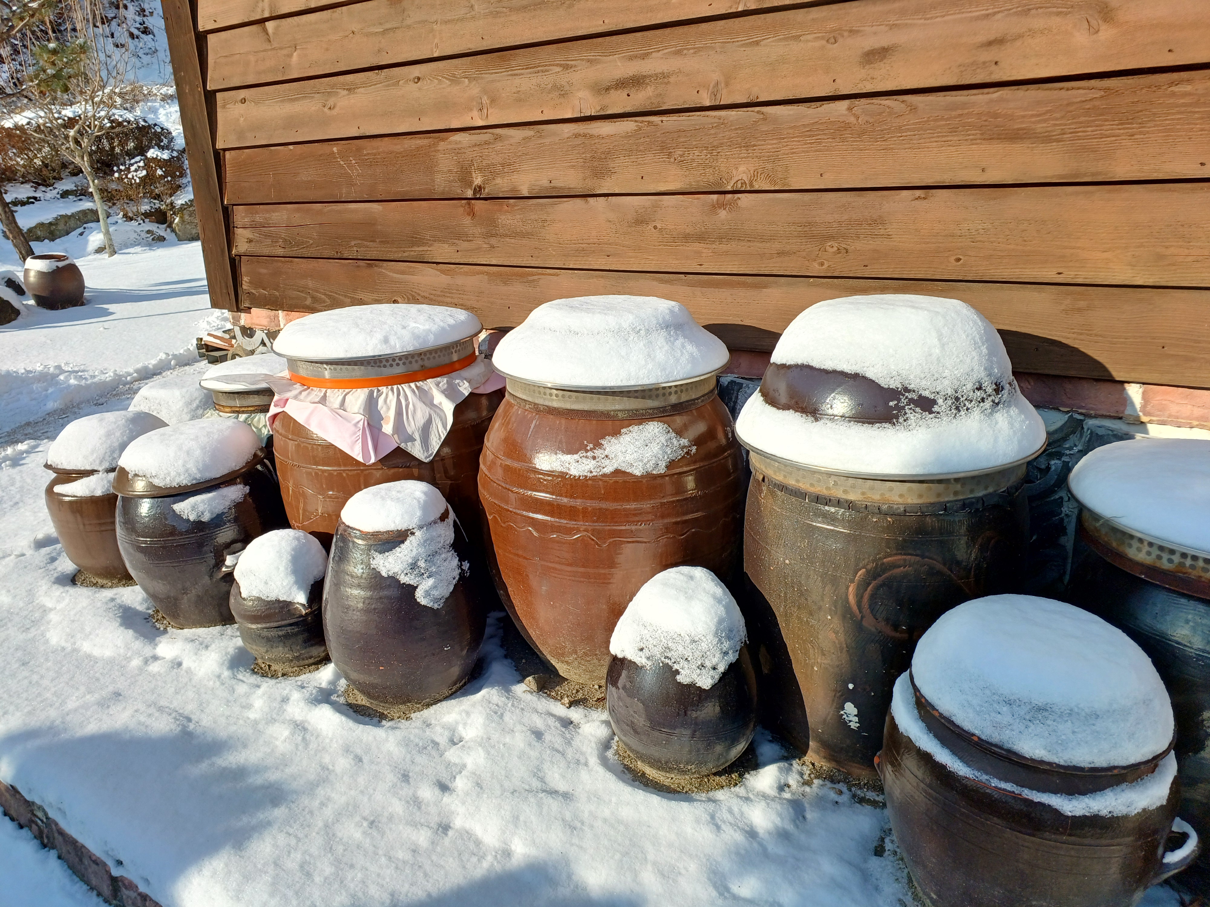 간밤에 눈이 내려 소나무와 노각나무와 장독과 돌담이 제 원 모습을 잃고 하나로 통일된다